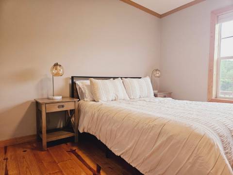 Big Sky Cabin 占地 20 英亩,周围环绕着 4000 英亩郁郁葱葱的肖尼森林。僻静而私密的这所房子欢迎您来此享受宁静的休憩。房子拥有全木地板和大量窗户,可欣赏美景和自然光线。大露台是闲逛和享用一杯葡萄酒的理想场所。大型火坑俯瞰绿色山丘和大松树。