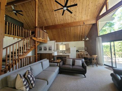 这间宽敞的2500平方英尺(约232平方米)的湖畔滑雪小屋设有4间卧室和2间全套卫浴,可舒适容纳10人入住!森林小屋距离派恩克雷斯特湖仅 5 分钟车程,距离道奇岭滑雪度假村的冬季乐园也仅 15 分钟车程!