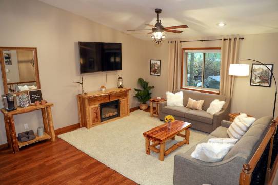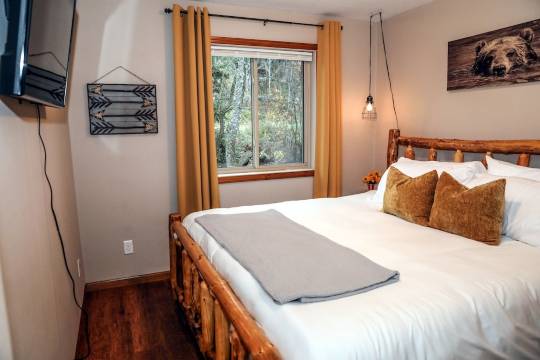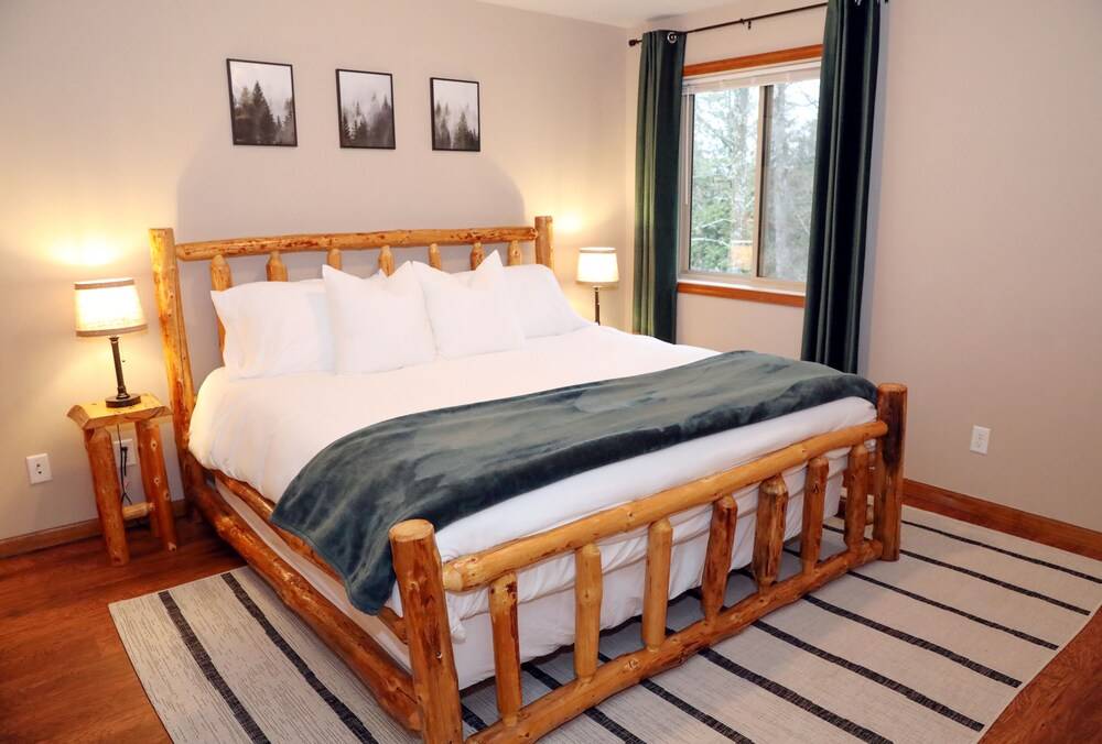 住宅设有 4 间卧室、3 间全套浴室和 2 间独立的客厅,为您和所有家人(包括狗狗)提供充足的活动空间!所有卧室的设计都以舒适和放松为首要考虑,每间卧室都配备带 Netflix 和 Amazon Prime 的智能电视。住宅各处均摆放着精美的手工家具,均采用明尼苏达州特产的北方松木制成。我们甚至为任何“额外”的小狗准备了原木狗床,供它们在入住期间领取!