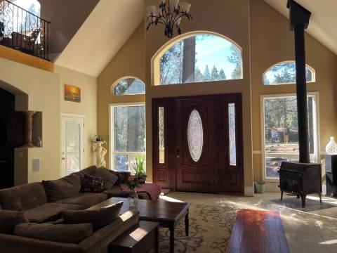 定制住宅,可容纳10人,5间卧室,3间全套卫浴,烧烤设施。附近有湖泊和河流,可供孩子们在户外搭帐篷玩耍。距离婚礼场地仅5分钟路程(我们这里就有一个婚礼场地)。周边有**的徒步、骑行、钓鱼、摩托车道、公园等等,户外活动丰富多彩。配备台球桌,入口处挑高36英尺(约11米),定制建造。主卧套房内设有按摩浴缸,主淋浴间配备6个淋浴喷头,并提供网络。步行即可到达沃顿超市。(露台上的热水浴缸将无法使用。)楼下有一间带特大床的主卧浴室,第二间卧室配有一张大床,书房配有一张大床和两张单人床。楼上有两间卧室,均配有大床。丙烷壁炉无法使用,但可以使用燃木炉。从80号高速公路出发,从福雷斯特希尔出口下高速,向南行驶,您会经过一座大桥(见图),然后上坡行驶约17英里,经过沃顿超市后立即左转。洗碗机已更换为新的,退房时请将餐具放入洗碗机并启动。请将用过的床单拆卸并放置在洗衣房。请将所有垃圾放入外面的垃圾桶中。垃圾收集时间为周一早上,因此如果您周一下午退房,请将垃圾桶放在街边。关于宠物:允许携带宠物。首笔75美元的费用包含两只宠物。两只以上宠物,每只加收 75 美元。退房时间:上午 11:00 前退房。儿童入住:允许 0-17 岁儿童入住,请密切观察。特殊规定:超过 10 人入住,每人每晚加收 75 美元,物业经理将向业主报告。宠物不得上床、家具和沙发,请清理宠物粪便,否则将加收 100 美元。床铺需拆卸,床单和枕套需放入洗衣机清洗。餐具需清洗干净。入住时间:下午 2:00 后入住。吸烟:禁止吸烟。物业经理闻到烟味将收取 200 美元罚款。活动:禁止举办任何活动。