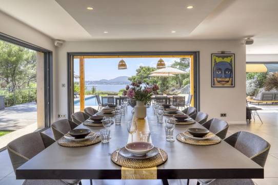 Luxurious waterfront villa with heated pool