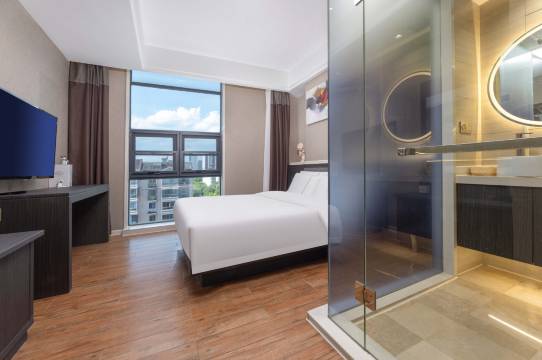 酒店内饰现代别致,客房布局合理、精巧不失雅致;设有多款房型,配以24小时热带雨林式豪华淋浴设备、国外新的新风系统,营造惬意睡眠空间。