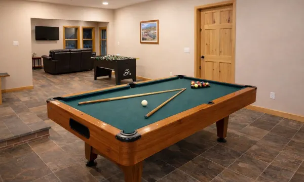 这栋 3,600 平方英尺的湖畔别墅设有六间独立卧室和四间全套卫浴,是家庭度假和聚会的理想之选。下层游戏室则为儿童和青少年提供了额外的活动空间。这里也非常适合高尔夫球团体和参加湖景旅馆婚礼的宾客,步行仅需5分钟。