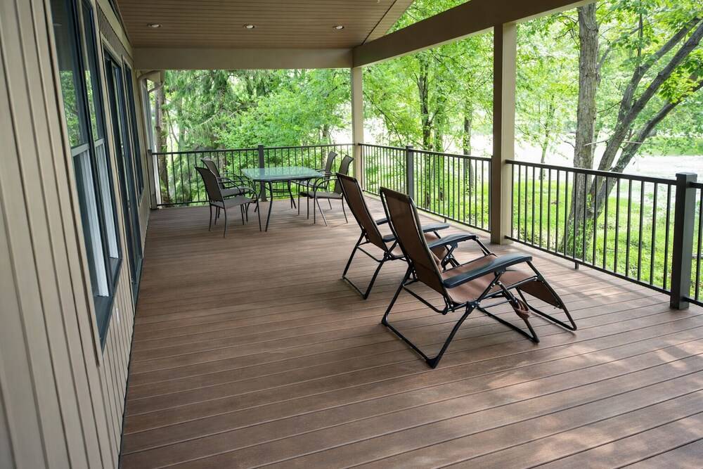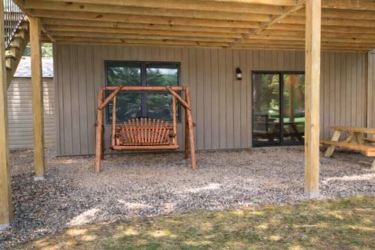 您可以在后院游泳、划皮艇或垂钓,也可以在宽敞的带顶门廊上放松身心,欣赏湖光山色。