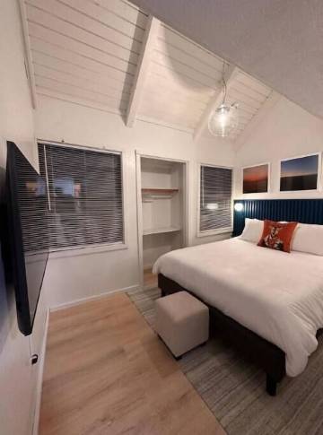 我们的山间小屋是一处充满乡村风情的优雅港湾,将现代舒适与壮丽山景完美融合。精心布置的室内空间、舒适的壁炉和私人露台,营造出一个私密的休憩之所。小屋毗邻三个滑雪胜地和风景优美的州立公园,是开启冒险之旅的**去处。个性化的点缀确保您拥有独特难忘的住宿体验。这间小屋不仅仅是一处住宿,更是一处沉浸式的山间世外桃源,为您带来宁静、冒险和珍贵的回忆。