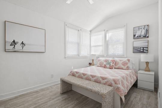 这栋房屋最初是布兰丁营地的一座陆军营房,于 1948 年用火车搬迁至杰克逊维尔海滩。如今,它已全面翻新,同时又保留了当地历史的一部分。我们希望您入住期间,能够体验杰克逊维尔海滩的昔日风情。
