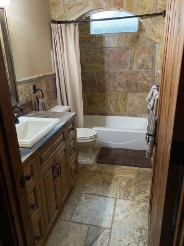 这所房子设有一个美食厨房,配有铜制抽油烟机、双烤箱、六个燃气灶具、四英尺商用冰箱、微波炉、洗碗机和一台电视。厨房外的大餐厅可供六人就座,配有电视客厅配有舒适的家具和大电视,方便您放松身心。洗衣房配有洗衣机和烘干机供您使用。