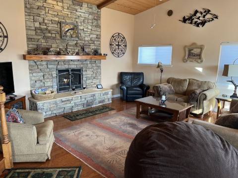 这些令人难以置信的美景和客厅里从地板到天花板的岩石壁炉,营造出浪漫的氛围或温馨的聚会。地板铺设抛光硬木地板,大厅采用西南风格的装饰,并配备一台55英寸大屏幕电视。STARLINK卫星网络支持流媒体播放。所有隔音窗户均可欣赏湖景和开阔视野。STARLINK卫星网络拥有速度和流媒体播放方面最快、**质的服务。房屋内设有沙狐球桌,可供您进行竞技娱乐!湖畔小屋应有尽有。初次入住的客人常常会对这里丰富的设施感到惊讶。我们致力于满足并超越所有客人的期望,并以此为荣。