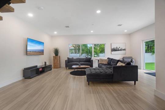 探索奢华的度假胜地,放松与便利融为一体——Bally Vacation 是一栋设计精美、宽敞的 4 卧室 3.5 浴室度假屋,位于宁静的比斯坎公园高档社区,距离迈阿密和劳德代尔堡的活力中心仅数分钟路程。