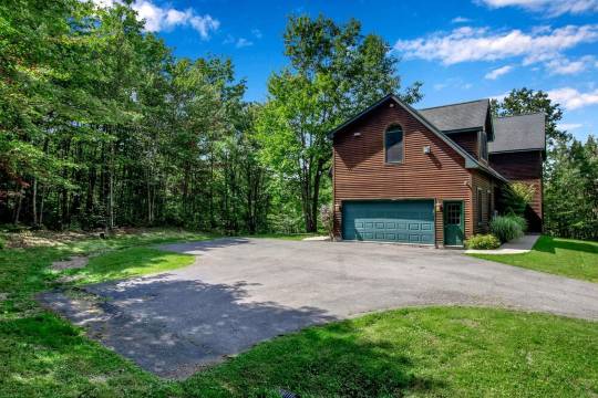 屋外有一个带顶棚的门廊,门廊上摆放着两把摇椅,一个沿着房屋后侧延伸的宽阔露台,以及一个**的雪橇坡道,周围环绕着大自然。这栋房屋隐匿于树林之中,是您享受宁静住宿的理想之选。