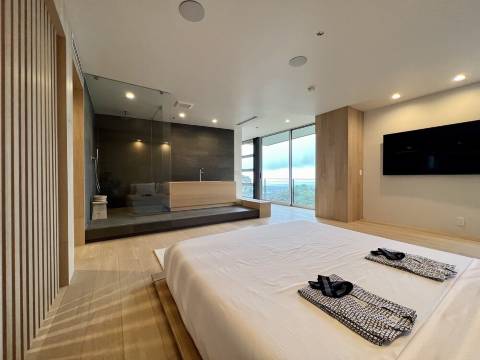 宽敞的套房配备特大床,可饱览壮丽的峡谷和城市景观,并设有日式风格的水疗浴室,配备深浸浴缸和步入式淋浴间。毗邻的休息室是瑜伽、冥想或静谧放松的理想场所,为您打造私密的下层休憩空间,助您身心焕发活力。