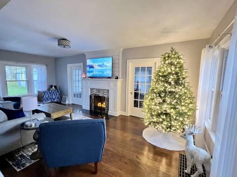 楼上有三间宽敞的卧室,配有柔软的床上用品,可让您安睡一晚。我们最喜欢的是“我爱露西”套房,配有大约 1953 年的复古卧室套装!这间客房融合了宾夕法尼亚州伊利市艺术家对露西的演绎和复古床上用品,是一处充满乐趣的度假胜地。2 号卧室是可欣赏湖景的大床房,3 号卧室是可欣赏湖景的特大床房,配有大型智能电视。楼上有全套卫生间,二楼有半套卫生间。地下室有洗衣房。