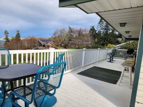我简直无法停止赞美这里的水景和山景!您可以坐在环绕式露台上,欣赏日落、过往船只和翱翔的鸟儿。步行即可到达布什角码头(下山10分钟,上山15分钟),那里有海滩。您还可以在采光良好的地下室玩各种游戏。如果您想外出探索,弗里兰镇距离这里仅10分钟车程,那里有杂货店和餐厅。库普维尔和兰利也都在20分钟车程之内。