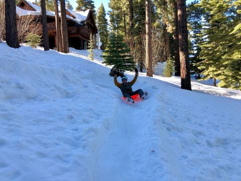 冬季,我们会为孩子们(以及童心未泯的大人们)提供雪橇,让他们在我们家下方的山坡上尽情玩耍。