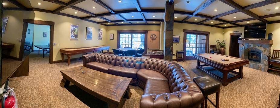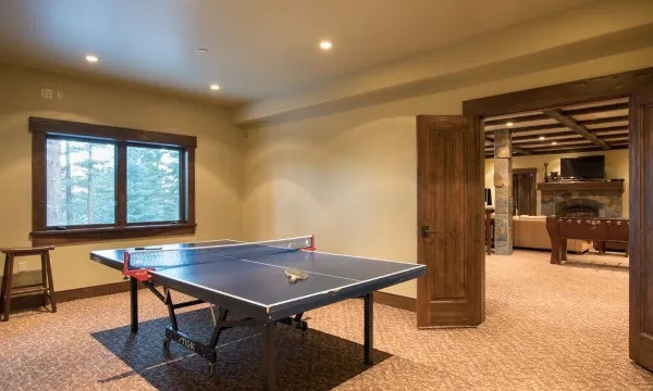 我们超棒的游戏室设施齐全,应有尽有:一台84英寸的大屏幕电视、一张台球桌、一张16英尺长的专业沙狐球桌、一张专业桌上足球台、一张乒乓球桌、一个飞镖靶,以及一张大型游戏桌,非常适合扑克或纸牌游戏爱好者。