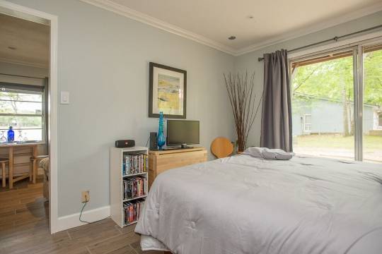 专为情侣打造的度假胜地。这间温馨的小木屋是您在湖边放松身心的完美之选。小木屋配备齐全的厨房和舒适的起居/用餐区,是享用浪漫晚餐或依偎着阅读一本好书的理想场所。主卧宽敞舒适,并设有通往户外的独立入口。该房产拥有三个户外休息区,方便前往湖边。配备篝火坑和丙烷烧烤炉(丙烷需自备),您一定会想把大部分时间都花在户外。这处房产位于路的尽头,私密性极佳,是您周末湖畔度假的理想之选。