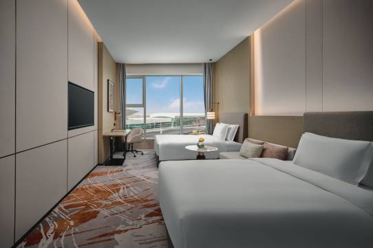 酒店地理位置很好,就在T2对面,对于早航班和晚到达是个不错的选择,房间很大,干净舒适,服务人员热情有耐心,我们到达的时候已经凌晨1点了,服务人员还是满足了我们所有的需求,包括水和拖鞋,以后还会继续选择这个酒店,推荐给有需求的小伙伴们!