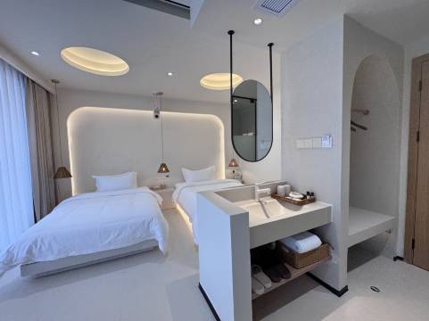 民宿在景区山门内,打车和自驾均可直达,交通方便。整体环境很好,设备也很新,房间很大,周边吃饭和去景区都很方便,楼下超市买东西便宜。小朋友在房间都不想出门了,缺点是太新了,房间里有比较大的装修味道,要一直开着窗口才舒服一些。