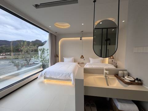 是新开的民宿,装修我特别喜欢,预定之前看了很多家景区内的民宿对比,这家装修色调特别明亮,而且有个大的落地窗,看起来也特别干净。