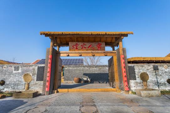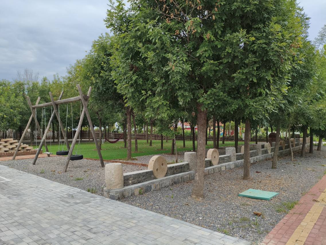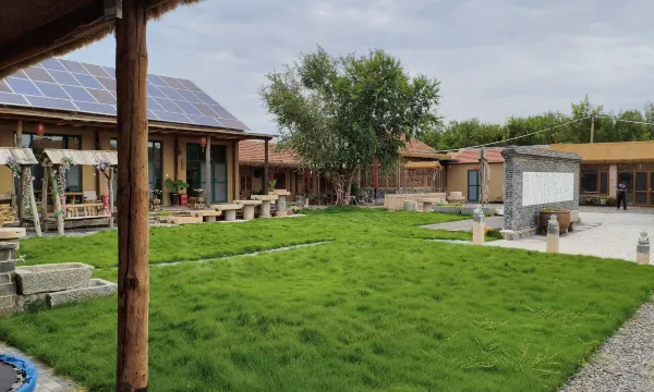 可能是同行的衬托,黄河口周边都是乡镇和下面的村,设施伙食有限,这个能看出用心设计的的农家院显得格外不踩雷。老板说两个宅基地合成一个建设的,能看出确实用心设计了,有庭院草坪、有老农具点缀,房间依托老式农村起脊房屋,小孩儿体学习农耕时代传统有点意思。吃饭的话附近民宿可以,不过需要提前定——我们没预定,没有吃上炖菜吃,看大门边上有老式农村黄土自制的泥灶台,柴火炉配铁锅的话应该有点期待性呢。