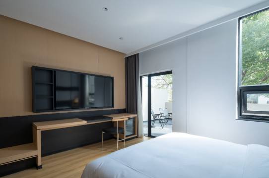 这是我目前住过的最好的设计师酒店,整个设计风格很喜欢,停车场🅿️很大。外部内部环境都非常好,房间对面都是绿植,感觉很好。我们定的房间有个大大的阳台,而不是一米阳台,我还在上面健身很方便。送的小礼品非常实用,有面膜,耳塞,洗衣液,这个很难得,用心了。送的水果比很多酒店有诚意多了,还配了签子。相比之下价格很合适,性价比超高,强烈推荐。