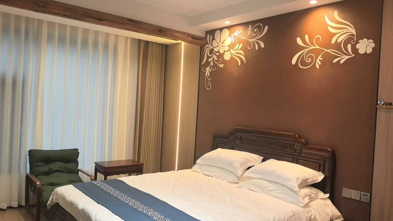 这次入住的房间非常干净,古风古韵的装修风格我很喜欢。里面的娱乐设施也很齐全!真是性价比很高的一家民宿。适合带着朋友家人来放松游玩。推荐!推荐!