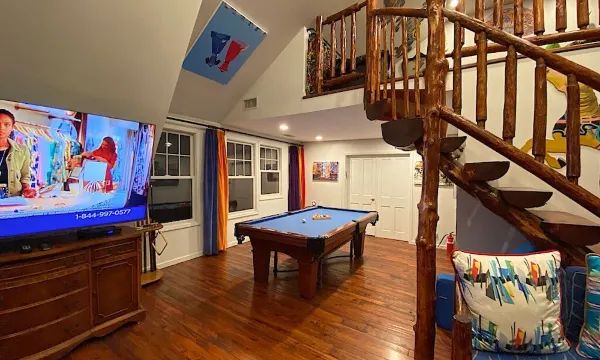这栋马车房位于我的房产内,坐落在一个环境优美、鹅卵石铺就的静谧街道上,周围环绕着许多宏伟的老房子。它宽敞豪华,又不失乡村风情。马车房建于1887年,并于2000年进行了翻新。它一直是我的孩子、朋友和家人的休憩之所。现在,我把它提供给您,让您也能享受这份美好!这里是举办聚会或派对的**场所!马车房内设有3间卧室、1个阁楼、许多沙发、2个全套卫浴、1个半套卫浴、恒温泳池、2个热水浴缸、带热水和2个淋浴喷头的私人户外淋浴、篮球场和蹦床。恩格尔伍德镇遍布美食餐厅、温馨咖啡馆和琳琅满目的商店,步行仅需7分钟即可到达。恩格尔伍德的东山地区是长跑、散步和骑行的理想之地。