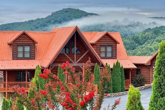Large Mountaintop Cabin Sleeps 16! Blue Ridge Mountain Views & Wraparound Deck