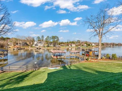 在谢里尔斯福德的露露码头 (Lulu’s Landing) 享受诺曼湖 (Lake Norman) 的**度假体验——距离丹佛和穆尔斯维尔仅几分钟路程。走出家门,即可来到您的私人码头,这里非常适合停泊船只和几辆水上摩托艇,宽大的石阶方便您轻松下水。您可以划着六艘成人皮划艇、两艘儿童皮划艇、两块桨板和大量漂浮物在小海湾中穿梭,所有设备均配备救生衣,确保您的安全。与亲朋好友在宽敞的石砌火坑旁享用烤棉花糖或日落鸡尾酒,或在配备舒适座椅、燃气烧烤炉和两个可俯瞰湖景的纱窗门廊的大露台上放松身心。