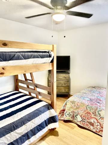 这处湖畔房产经过全新装修,配备全新暖气/空调通风系统、油漆、地板、照明、床上用品和家具!尽享宁静的湖畔生活!来湖边放松身心,享受烧烤乐趣。宽敞的户外休闲区,后院设有全封闭式围栏。步行2-3分钟即可到达湖边。网球场、篮球场和沙滩排球场近在咫尺。附近还有游乐场和船坞!风景优美的步行道。提供空气曲棍球、皮划艇和台球桌,需缴纳400美元可退还押金。关于宠物:允许携带宠物:每只体重低于50磅的犬类(最多两只)。关于退房:退房时间为上午11:00前。关于儿童:允许携带3-17岁的儿童。关于入住:入住时间为下午4:00后。关于吸烟:禁止吸烟。关于**预订年龄:**租客年龄为21岁。关于活动:禁止举办任何活动。