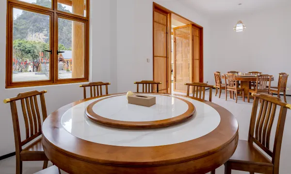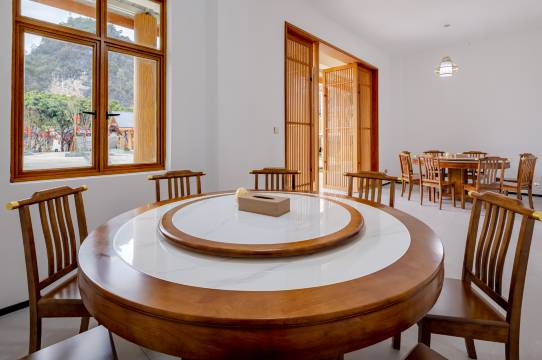 来布泉河游玩首选住宿!!位置便利,就在布泉河边,风景很好,出来一点就是九龙相会。酒店很新,服务很好,一应俱全,附近没有太多饭店,在酒店里就餐就很方便啦,还送了月亮山的船票。家庭出行太合适了。坐在小园子里喝喝茶,发发呆,完美!!