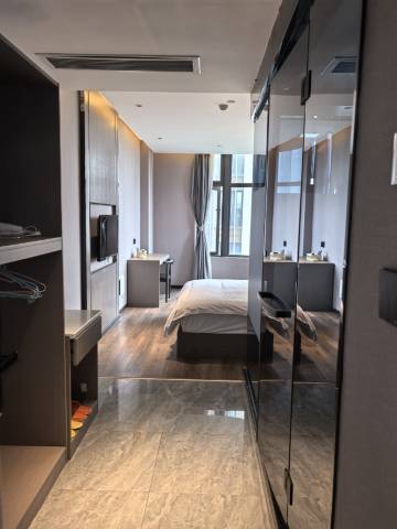 酒店还行吧,是公寓式酒店,门是密码锁,你把身份证拍照发给房东,房东直接发密码给你那种。