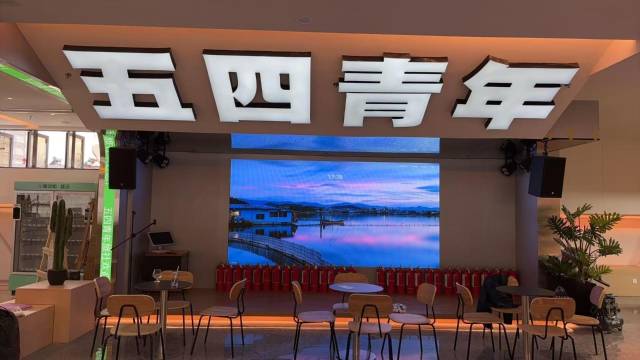 大厅里有投影仪,一直放电影以及综艺或者直播之类的,有饮水机,旁边是那种抽式的一次性纸杯,没有纸杯找前台小姐姐要。