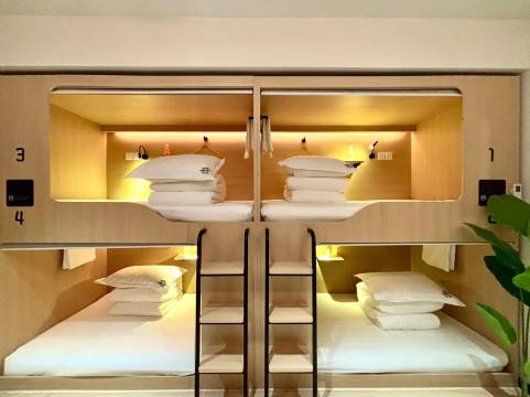 床位都是带隐私帘的,独立充电口、小灯、储物柜一应俱全,睡觉不怕被打扰,贵重物品锁起放心得很!卫生搞得喷香,卫浴干净无异味,24小时热水随时洗得舒服😌