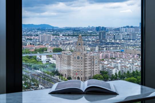 酒店位于苏州工业园区和姑苏区的中间位置,交通便利,在24楼可以远眺历史古城和海关大楼,天气好的时候可以看到北寺塔[太阳][太阳][太阳][太阳][太阳][太阳][太阳]前台的工作人员和礼宾工作人员都很热情,感谢管家Demi安排升级房间协助办理入住。酒店24楼还配有健身房,房间设计也特别舒服,空间很大,稍微有些装修的味道,最爱落地窗[强][强][强][强][强]