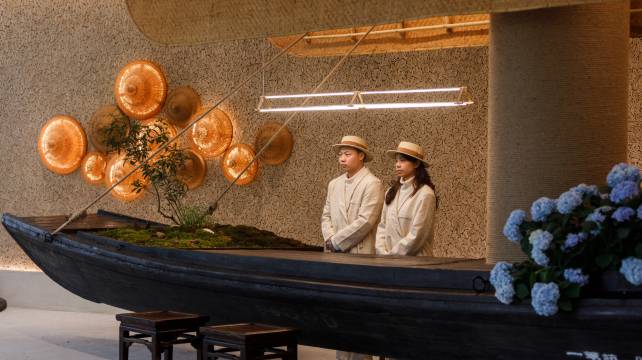 烟雨江南,山水江西,灵秀九江,诗画庐山西海。一苇杭度假民宿,就坐落于5A景区——江西省九江市庐山西海风景名胜区梦生山码头畔。前俯308平方公里的柘林湖,旁依四季郁郁葱葱的梦生山,与绝美多巴胺色看台和躺平草甸为邻,晨看朝阳从梦生山后升起,暮赏如锦似画夕阳和晚霞,站在屋顶,可以看到西海著名景点沧海一树全景。拥有一级水质的柘林湖,水质清澈,是桃花水母栖息地,空气中每立方厘米富含15万个负氧离子,在这里度假,可悦心、可明目、可清肺。 除了大自然带来的健康气息,匹克球场、帆船游艇俱乐部,会让运动爱好者流连忘返。帆船、桨板、水翼冲浪板、匹克球、网球、羽毛球、登山步道、沿湖骑行公路、沿湖晨跑和夜跑栈道,都是健康在招手。一苇杭度假民宿一期分两栋:一苇杭·屿之境和一苇杭·山之境。共有诸多间客房,设计风格集侘寂风和中古风于一体,又兼顾了松弛感和精致感。多种房型,可观海,可面山。屿之境一楼是原创品牌西鱼咖啡,客人可以坐在窗边,喝着来自南美洲咖啡原豆冲磨的香醇咖啡,吃着精心烤制的西式餐点,度过悠闲的午后。也可以在冬天围炉煮茶,即使什么都不做,静静地坐着发呆,也很好。需要隆重出场的是位于山之境的苇小鲜生态火锅。来西海不吃苇小鲜,纵称美食家也枉然。苇小鲜主打庐山西海有机鱼,鳜鱼、鲈鱼、青魭、洄鱼、鲢鳙等,自小生活在柘林湖,肉质鲜美紧致,有“西海归来不吃鱼”之美称,无论是菌菇锅底、番茄锅底还是草本锅底,配上庐山西海的鱼,澳洲的和牛,云南的菌菇,是让美食家都舍不得放下筷子的美味。当然,屿之境楼顶吹晚风,赏夕阳,也可以来一杯鸡尾酒配牛排,啤酒配烧烤,或者一苇市集欣赏来自世界各地的设计师的作品,也是很美好的事情。花开四季,晴赏水光潋滟,雨看山色空蒙,闲坐海边品一杯手作咖啡,忙时抬头是一幅只此青绿的千里江山图。梦生山懂得你肩颈的僵硬,柘林湖听见你心跳的杂音——现在开始和一苇杭对话吧。