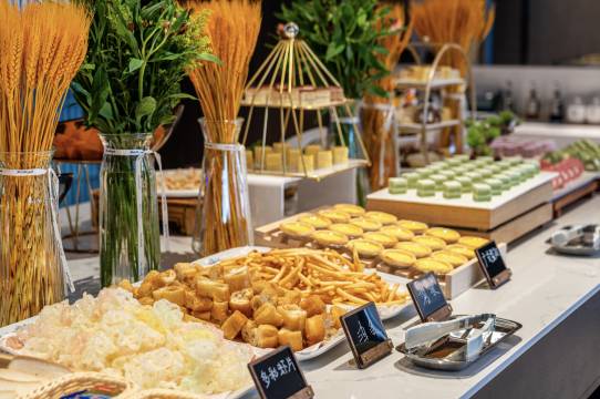 酒店的早餐种类丰富,中西式都有,食材新鲜,味道也很不错。有我爱吃的煎蛋、小笼包,还有各种新鲜的水果和饮品,每天早上都能吃得饱饱的,开启活力满满的一天。