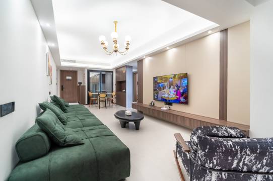 房间很大,和住在家里的感觉一样,孩子有独立的房间,装修和设施都很新,环境干净整洁,地下车库免费停车,楼下吃的也多,能看到大海,很满意的一次体验