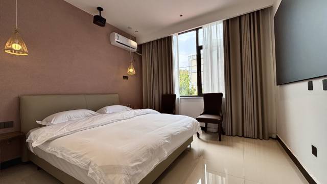 来这边旅游住了这家民宿,随便订的一家,没想到体验超棒!虽然是新装修不久,但没有装修过的味道。一到就发现有超大宽敞停车场,停车毫无压力。走廊种满了花,很美。房间干净整洁,躺着也很舒服,还有巨幕投影。位置也很优越,离芒市广场近,周边吃的挺多,出行觅食都方便,下次还来!