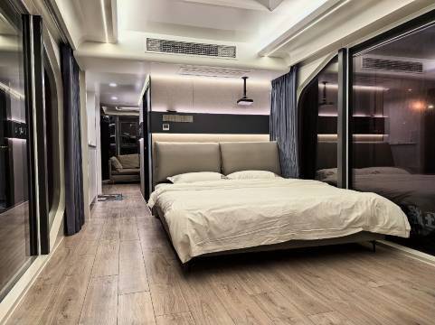 太空舱外观和智能设备都很好,房间设施很齐全,空调、新风、冰箱、洗浴、智能马桶,还有投影设备。