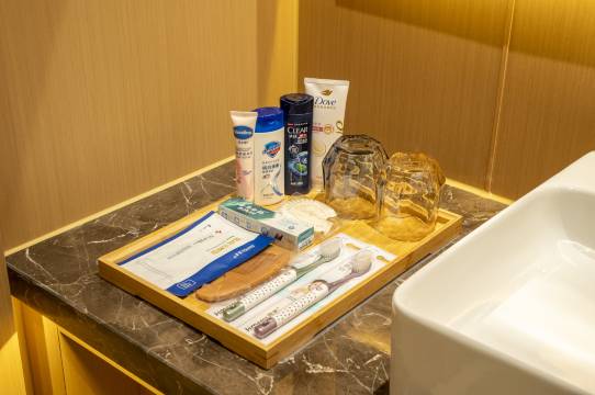 一直比较在意酒店细节,200块的收费,住这家店的时候本来想将近一下随便住家新店,卫生能好点,没想到住进来后把我惊讶到了。绝对性价比的天花板,房间有40平方左右,卫生间区域设计很奢侈,算上衣帽间一共有十几平,洗漱用品全是家用品牌,大概有一百毫升,软毛家用牙刷,云南白药的牙膏很惊喜,免费矿泉水竟然是百岁山大瓶的。科勒的智能马桶,专门查了真伪,的确是五千多块的真货,记忆棉枕头真心舒服,被子竟然用的羽绒被,睡衣质量也很值得点赞,布草很软。唯一不理解的是这种配置和这个价位利润从哪来?彬州的酒店已经卷到这种匪夷所思的成都了吗?但对消费者来说,的确是大大的福利和惊喜。
