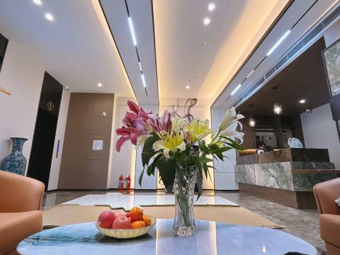 想着离医院近就很不舒服,到达酒店,服务人员带参观了一下房间,心理的不舒服一抹全消。房间很干净,卫生间是干湿分离的。因为是2025年开业的,屋内智能马桶,智能窗帘,智能灯控,电视控等…