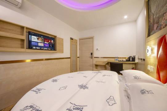 房间简约舒适,设施齐全,办理入住方便快捷,可以延迟退房。