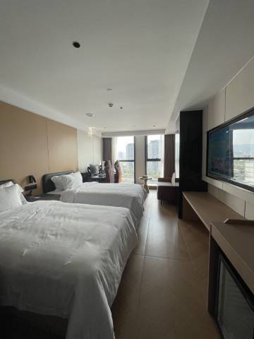 不愧是口碑很好的电竞酒店,电脑性能强,键盘鼠标手感好,网络很稳。房间干净整洁,采光通风都不错,床品一客一换。服务贴心周到,环境安静,设施齐全,住得很舒心。