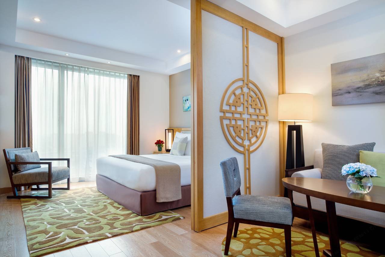 酒店拥有单双卧室套房等多种房型可选择,每个套房内配备HITACHI独立空调,制冷制热、通风出湿,自由把握节奏,冷暖随时切换;开放式厨房:SIEMENS、PHILIPS全套厨房设备,中西式菜肴任意发挥;SIEMENS洗烘干一体机,衣物安心清洗;可开启全幅落地窗,视野开阔,通风纳气;严格客房清洁消毒,24小时贴心守护。客房内布置高雅,宽敞的起居场所、高档寝具、独立浴缸和淋浴间、有多个国际频道的LED电视、高速宽带无线网络连接以及电子保险箱,居家般舒适,满足现代住客的需求期待。