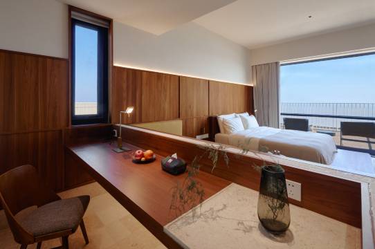 房间很大,位置在黄龙岛灯塔旁边,位置绝佳,算是悬崖酒店了。服务非常贴心到位,从上岛开始接到回程送。入住期间也是有求必应。酒店设计师风格满满,一楼的枯岛礁给人一种安静寂寥之感,传达着小岛精神。早餐也非常丰盛,面海而坐,吃着早饭吹着海风,惬意非常。最惊喜的是房间,基本全部面东临海而建,满面宽的窗,真的实现了躺在床上看日出的梦想。逛完岛空闲了还可以做做小手工,在超大落地窗的咖啡吧和露台看看书喝喝咖啡,感受面朝大海,春去秋来。裂墙推荐!