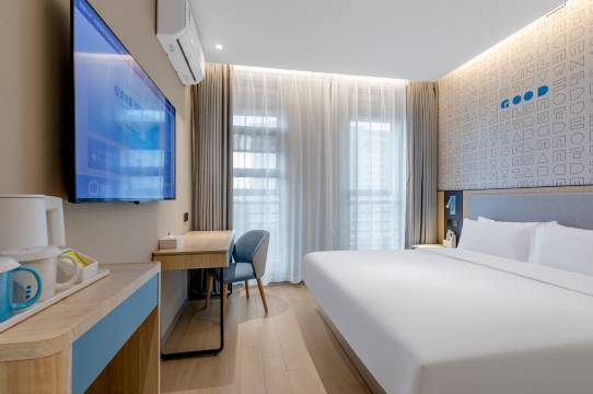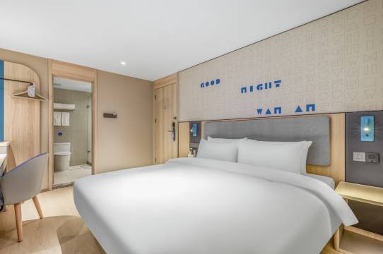 第一印象就是干净、漂亮,酒店很新,酒店的地理位置也非常方便,前往周边热门景点、餐饮店均很便捷,前台服务员和客房服务员好很多事事有回应服务质量非常好,价格不贵,环境也不错,房间干净住的很安心,房间宽敞明亮,另外还有免费停车,床也很舒服,属于稍软的床垫,有种慢慢沉下去的感觉,很快就睡着了,除此之外酒店一楼还有洗衣房和健身房还有机器人,洗完衣服不需要自己下楼拿取,前台服务员会帮忙取出来给机器人送到房间。酒店周边吃食也方便也很好吃,非常推荐这家酒店!