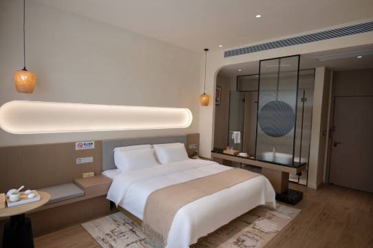 房间干净无异味,床品新且舒适,床头有充电口、马桶圈是智能的、淋浴水温和水压都刚好 床很软睡的很舒服😊