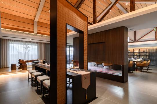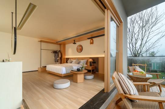 汉阳·院子简介 禅驿·汉阳院子,是青神县粮油现代农业园区一期三标段项目,位于汉阳镇汉阳场社区翻身街5号。项目通过盘活闲置国有资产汉阳粮管所仓房,以粮站、供销社、汉阳水码头、粮食晾晒等场景原型进行设计,建设集生活、生产、生态为一体的面向成都大都市圈的农旅融合度假样板。禅驿·汉阳院子是以打造“粮站”禅生活为主题酒店,为客人提供身心放松、回归内心宁静体验的场景。酒店占地面积15666.30㎡(23.5亩),建筑占地面积5457㎡,建筑总面积8654㎡。项目共有建筑7栋:清风院为接待大厅;夜月院为会议室、茶室、娱乐室等;春涛院为餐厅;牧笛院、横舟院、瑞井院、石笋院为客房,同时还设有禅欢餐厅、餐饮包间、阶梯咖啡吧、小酒吧,坝坝茶、能容纳80人的多功能会议室等。酒店以水为形,以田为骨,依托粮站旧址,重塑烟火平原生活形态,自然与设计的对话,传统与当代的结合,打造集生活、生产、生态为一体的乡村美学,观自在,舍尘嚣,住进汉阳院子感受处处弥漫着宁和悠远的气息! 禅欢餐厅: 餐厅可同时容纳120人用餐,早餐厅76个餐位,澄心包间10个餐位,渡心包间18个餐位,多功能厅(慧开厅)可接待80人以内会议,棋牌室4间,茶室室内16个茶位,坝坝茶24个茶位,咖啡厅33个座位,小酒馆25个座位。 禅修室: 文化活动开展欢喜抄经/汉服体验/花艺有禅/静闻篆香,可 同时进行15人禅修活动开展; 公共设施: 同时还设有乒乓球台、健身房、户外草坪等。 禅驿·汉阳院子进一步丰富了汉阳古镇旅游资源新业态,成为连接成都—乐山等旅游线路中转枢纽,有利于推动地方文化旅游及农业产业的发展,增加就业岗位,带动农民增收,促进乡村振兴。