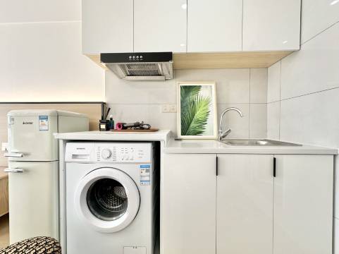 房间十分宽敞干净,冰箱洗衣机等日常用品一应俱全,还贴心的提供了一次性洗漱和马桶垫等洗漱用品,更有超大投影仪,还有落地大窗可以欣赏窗外风景